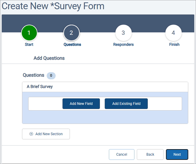 Click the Add New Form button at the top right, which includes the data collection category name assigned when the data collection was created.