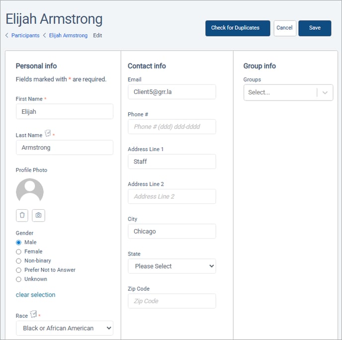 The Edit button opens the participant’s profile, where you can update the information for the Participant form record.