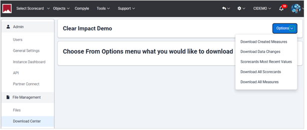 Download Center: Exporting Scorecard Data