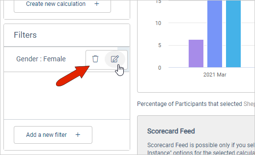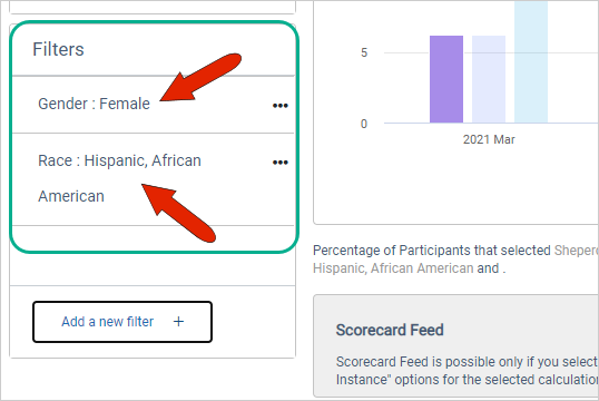 After creating a calculation, you can apply a filter to show data from a specific demographic.