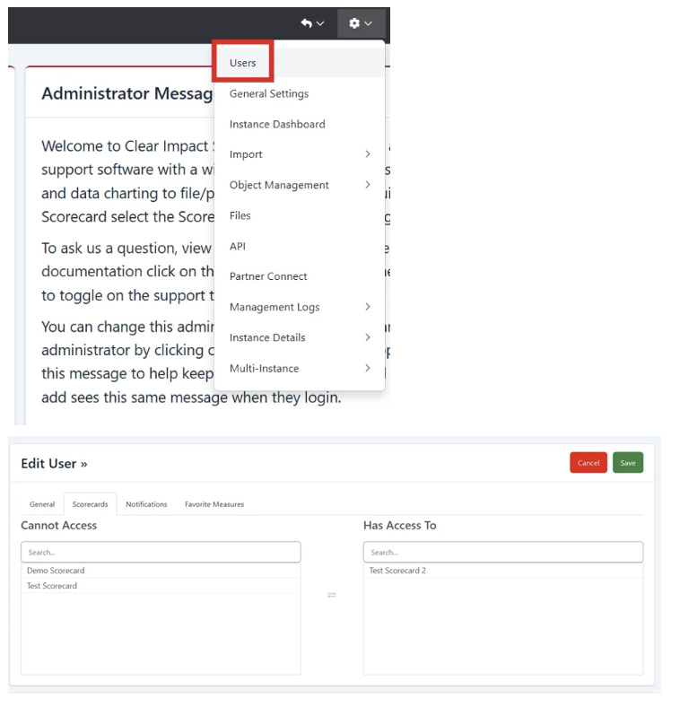 A user is having trouble access certain scorecards.