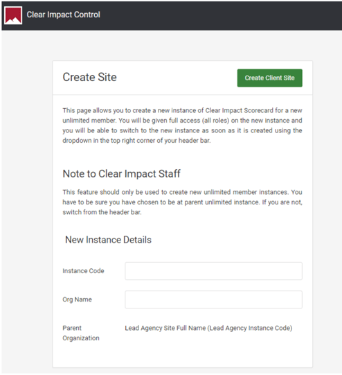 - 6. Click Create Client Site to save the information and create the site. A green confirmation message should appear.