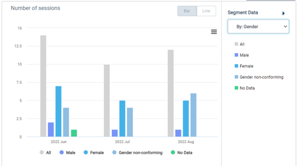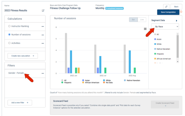You can also combine segmented and filtered LINK data. In this example, data is filtered to include only responses from females, and the data is also segmented by race.