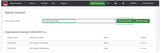 Alternatively, Clear Impact staff can copy scorecards from one instance to another, and implementation technical assistance hours can be used for copying the partner reporting measure scorecards from the lead agency's Scorecard site to each of the partner's Scorecard site.