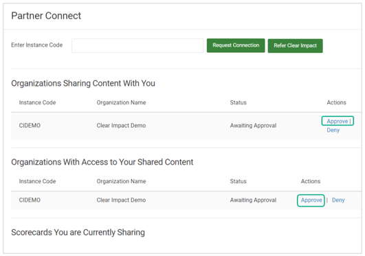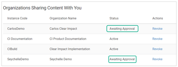 6. Recheck the Organizations Sharing Content With You list, looking for partners with Awaiting Approval status.