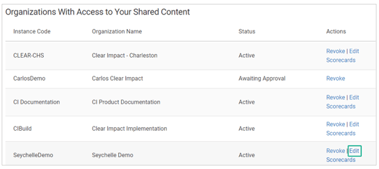 11. In the Organizations With Access to Your Shared Content list, find the partner and click the Edit action button.