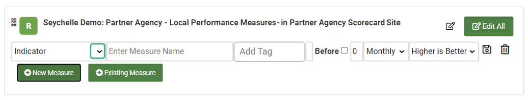Now that the reporting scorecard and measures from the lead agency have been shared with the partner site, we can create local measures in the partner agency site.