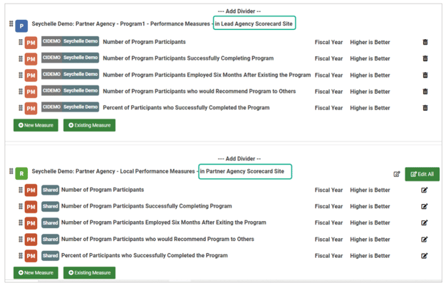 13. Optional: create dividers to separate the lead agency shared measures from the local partner measures.