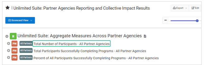 Once the partner's local measure scorecard has been shared with the lead agency, you can create calculated measures in the lead agency site that use the shared partners' local measures as disaggregated child measures. This allows the lead agency to summarize data across multiple partner agencies.
