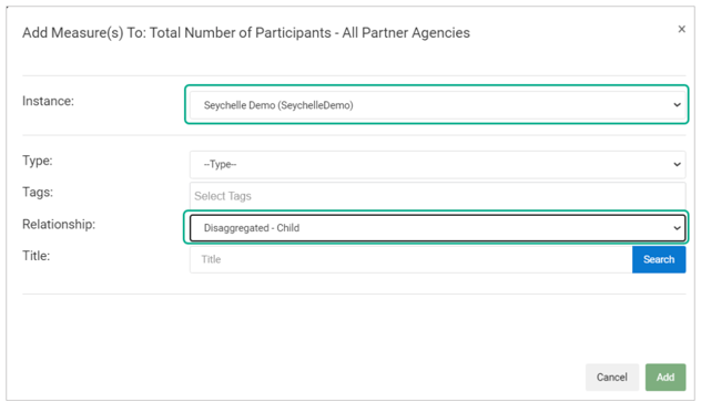 5. Add a new measure for each type of partner reporting measure that you need to aggregate and set them to the same reporting period as the local partner shared measures.