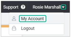To change your password directly in the system, click your user name at the top right and choose Account.
