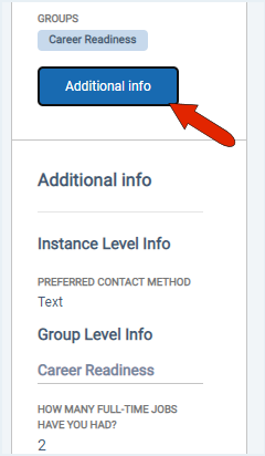 Clicking Additional Info displays responses to any custom participant fields and custom group fields.